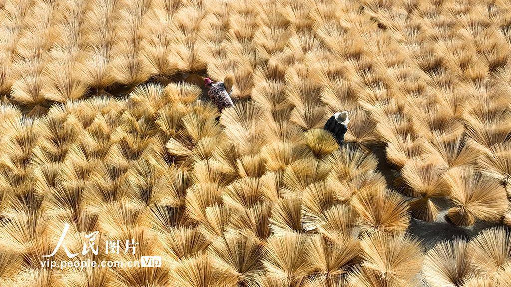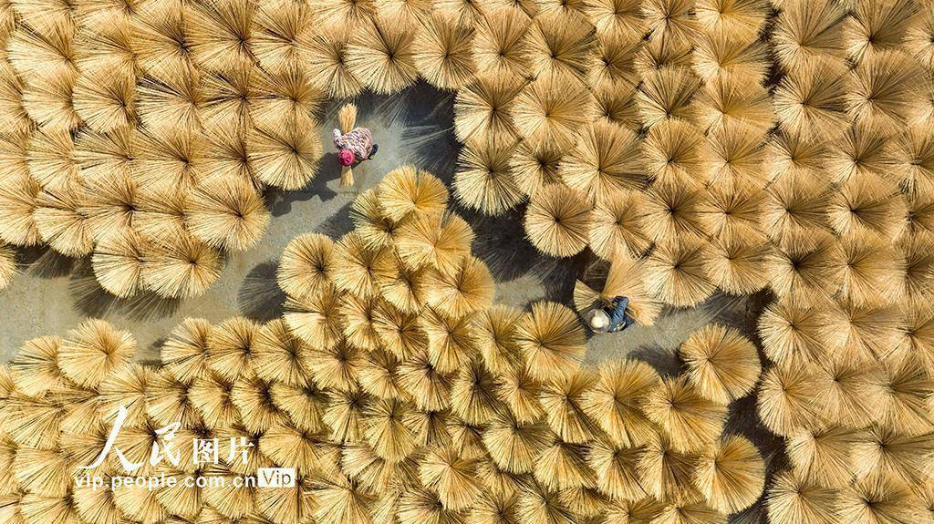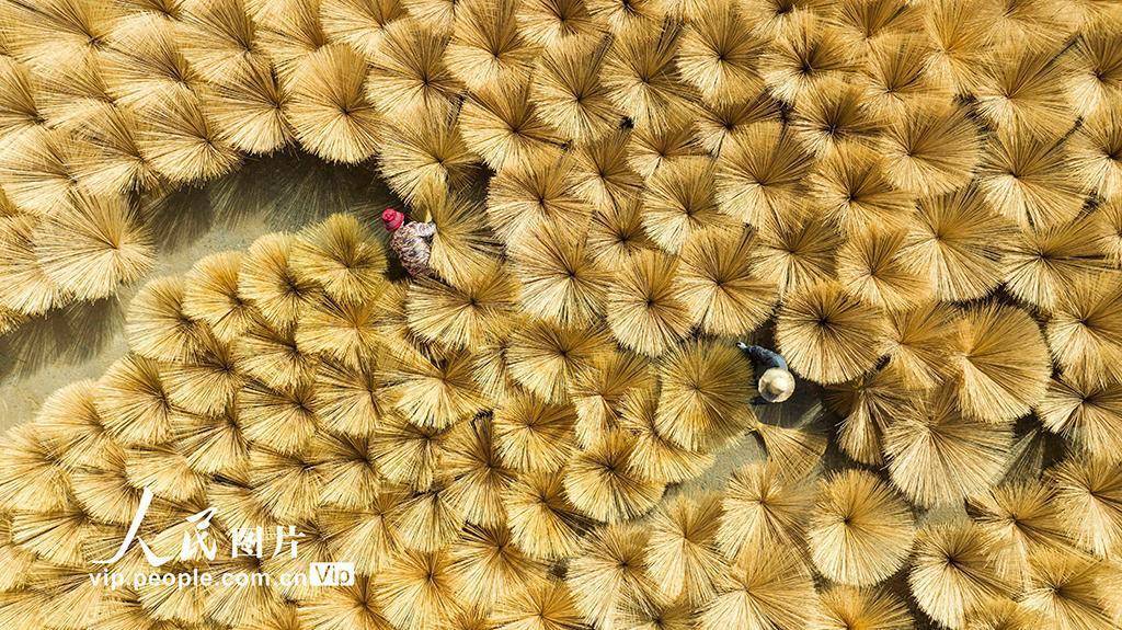 2025年11月20日,江西省宜春市铜鼓县排埠镇一家竹制品加工企业的工作人员正在晾晒竹丝。